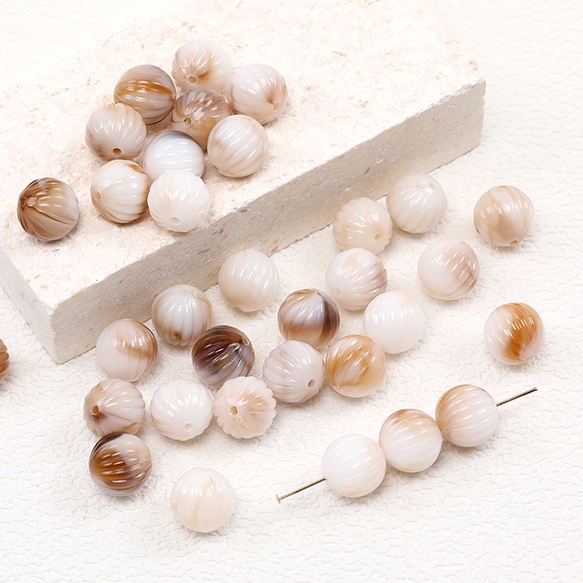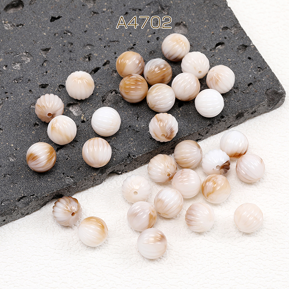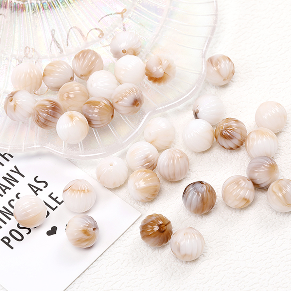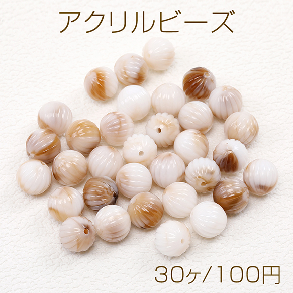 アクリルビーズ 筋入り丸玉 12mm グラデーションベージュ(30ヶ)