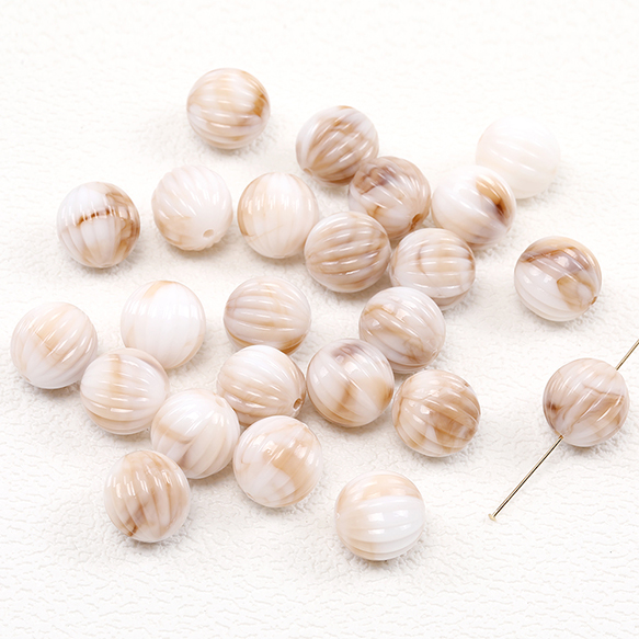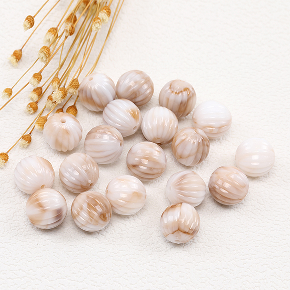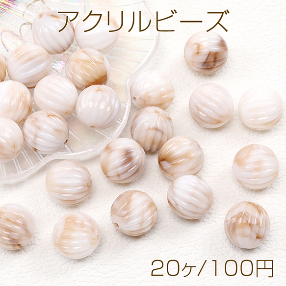 アクリルビーズ 筋入り丸玉 16mm グラデーションベージュ(20ヶ)