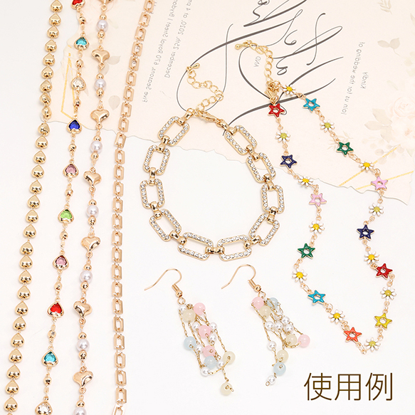 高品質ハンドメードチェーン ハート型 ゴールド 6mm(10cm)