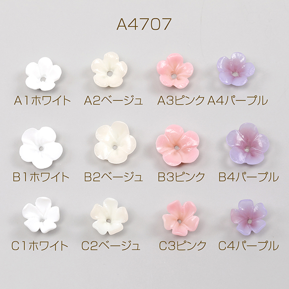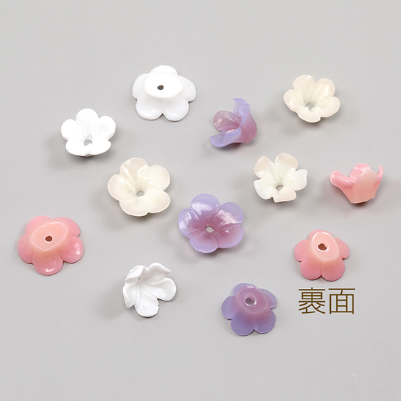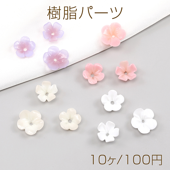 立体フラワーパーツ 樹脂ビーズキャップ フラワーチャーム 花座 小花パーツ 五弁花 中心穴あり(10ヶ)