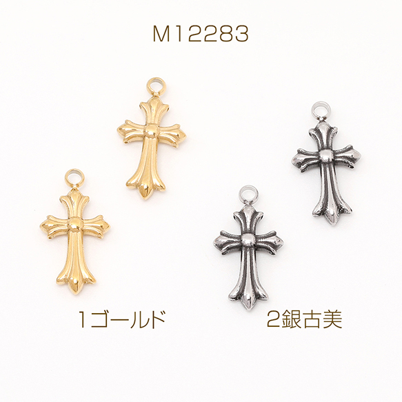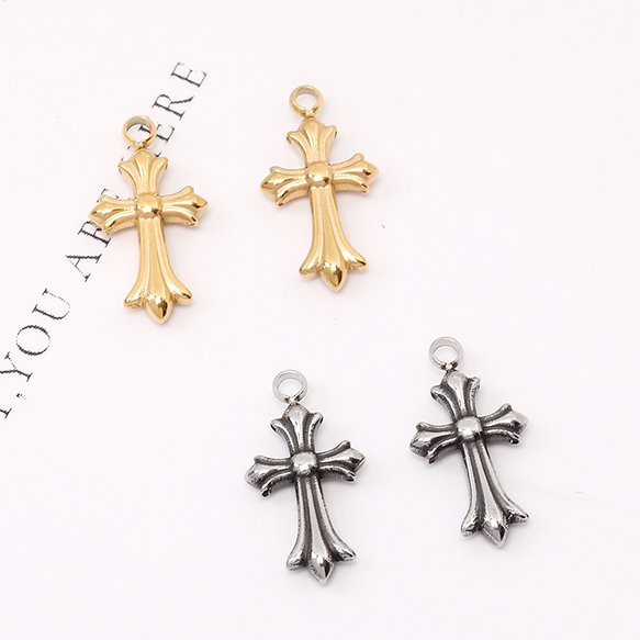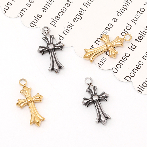 色褪せないステンレス製チャーム 立体クロスチャーム アンティーク調十字架チャーム 丸カンあり カン付き 8.5×16mm(1ヶ)