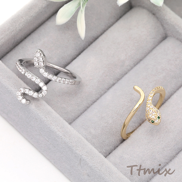 高品質オープンリング フリーサイズリング サイズ調整可 ジルコニアストーン付き(1ヶ)