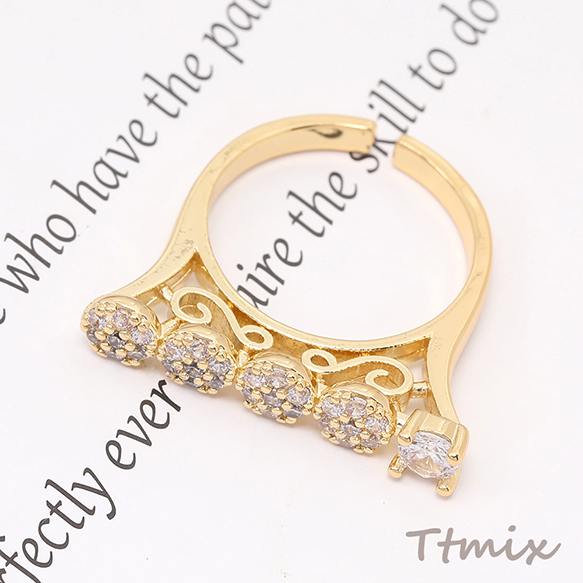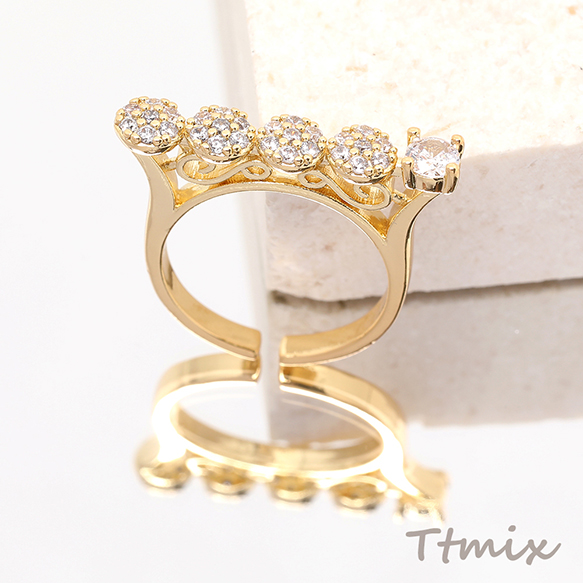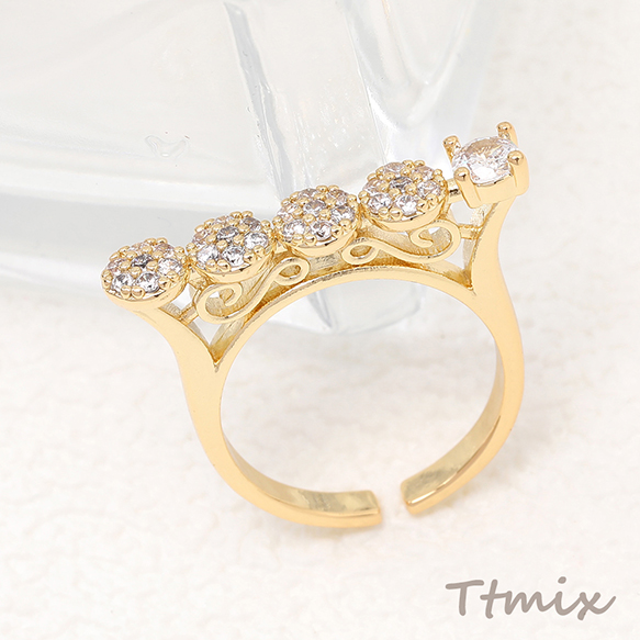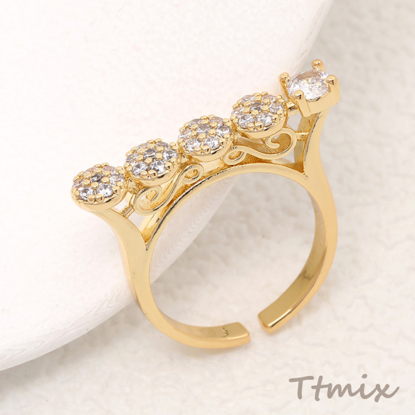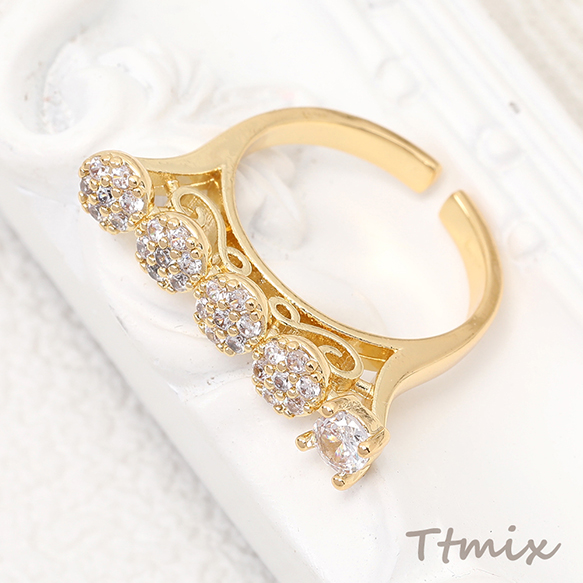高品質オープンリング フリーサイズリング サイズ調整可 ジルコニアストーン付き 幅約5mm ゴールド(1ヶ)