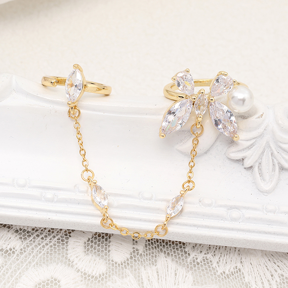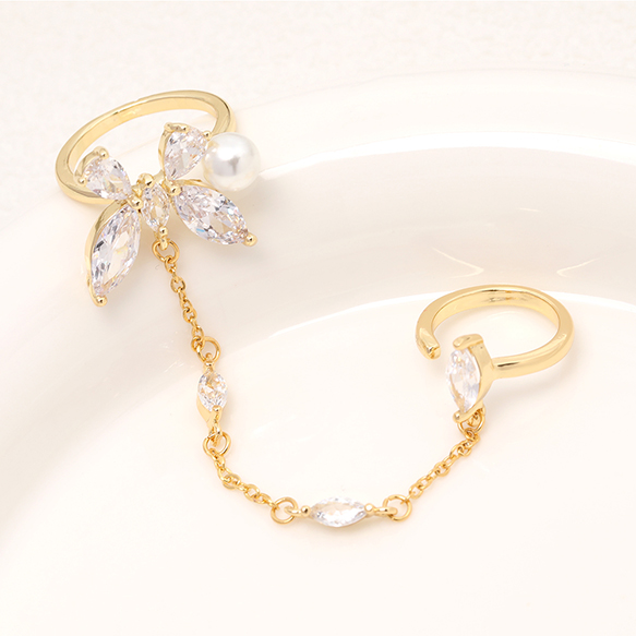 卸売高品質オープンリング フリーサイズリング サイズ調整可 ガラスストーン付き ゴールド