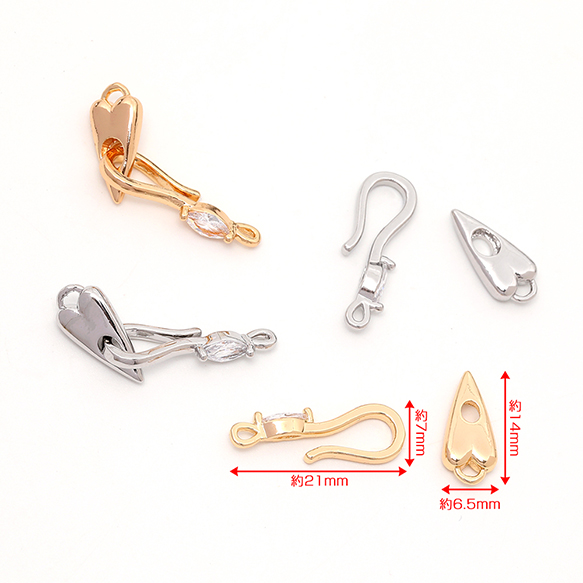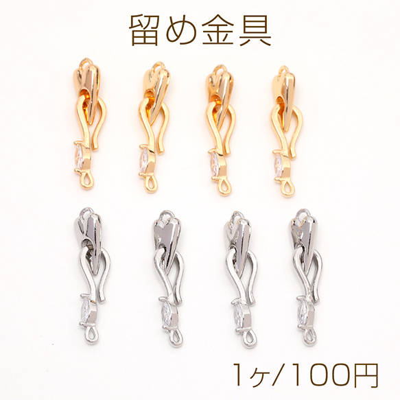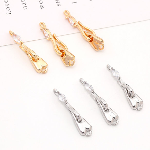 デザインフッククラスプ フック金具 フック留め金具 ジルコニアストーン付き ネックレス ブレスレットエンドパーツ(1ヶ)