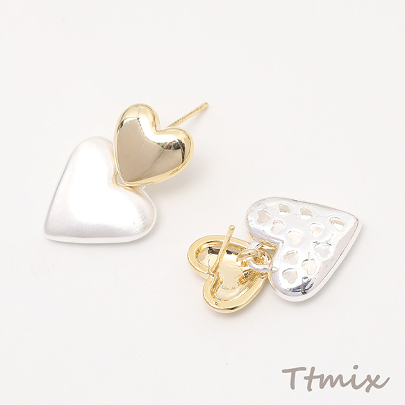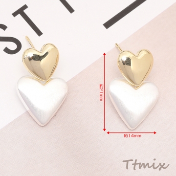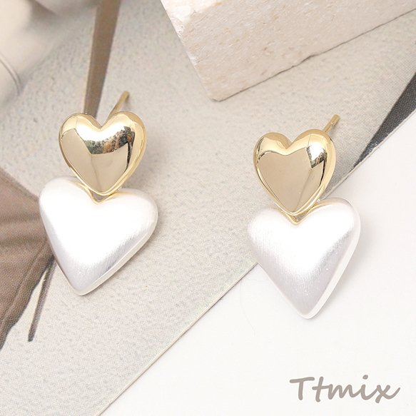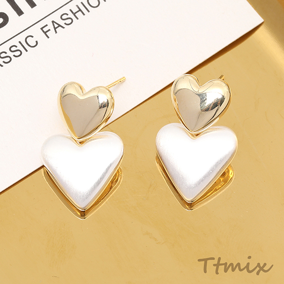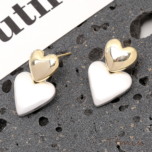 ダブルハートピアス レディースピアス おしゃれピアス トレンドピアス 14×21mm(1ペア)