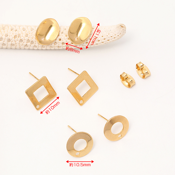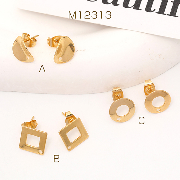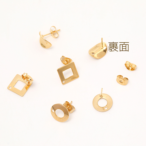 ステンレス製 デザインピアス 不規則オーバル スクエア型 サークル 1穴あり ゴールドカラー