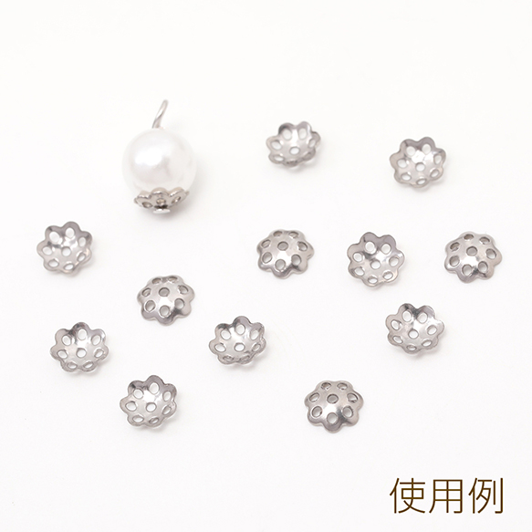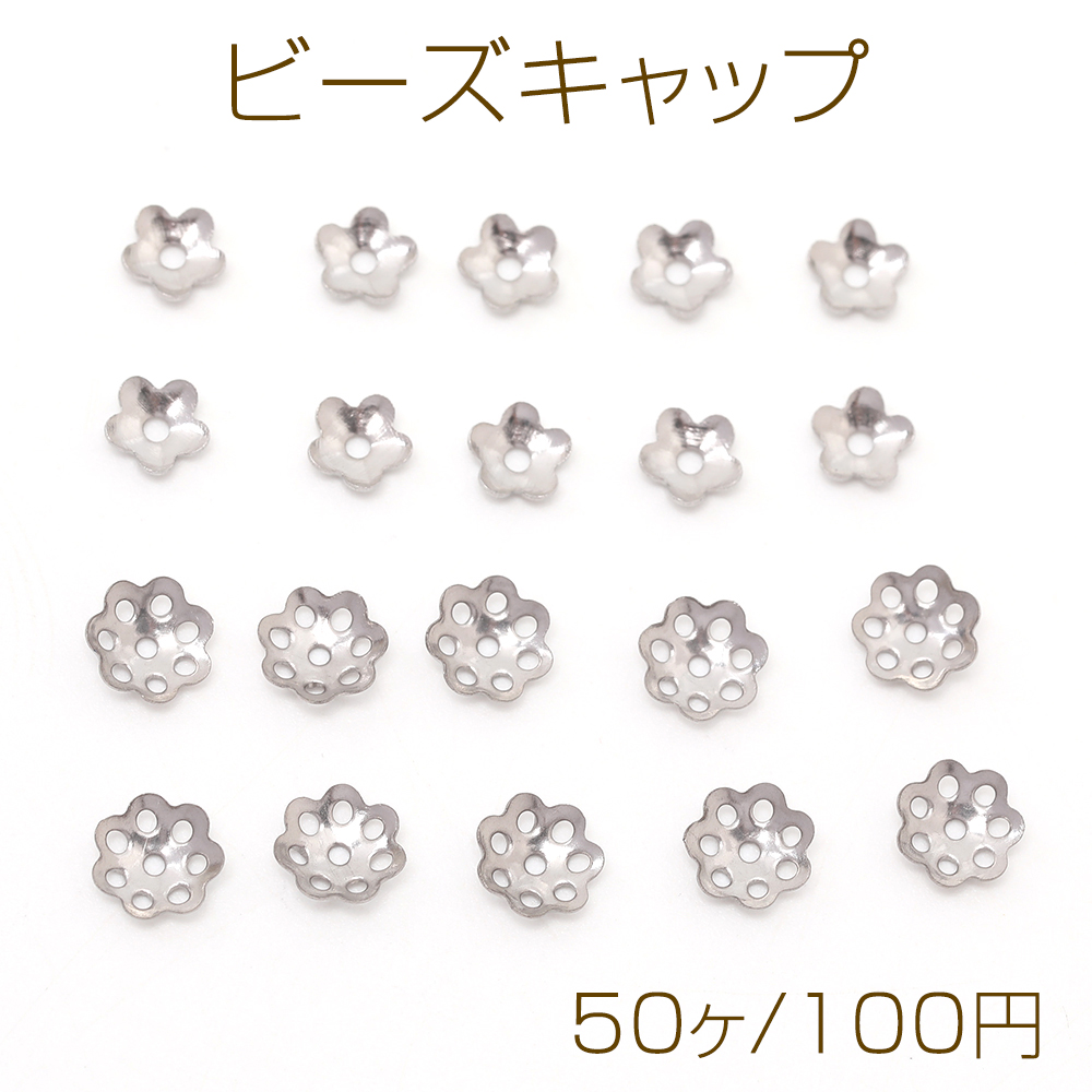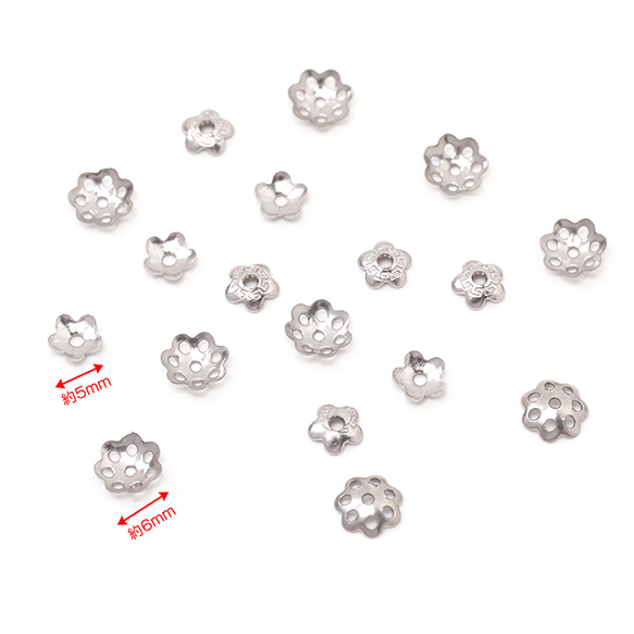 ステンレス製 ビーズキャップ 花座 シルバーカラー