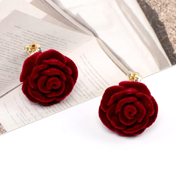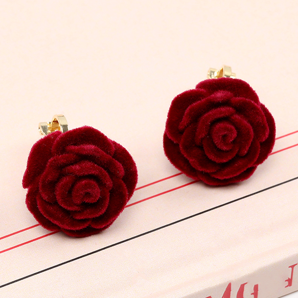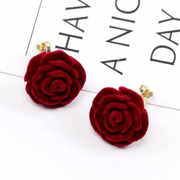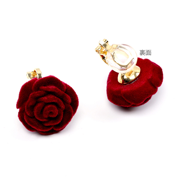 卸売クリップ式イヤリング バラ 18.5mm ワインレッド