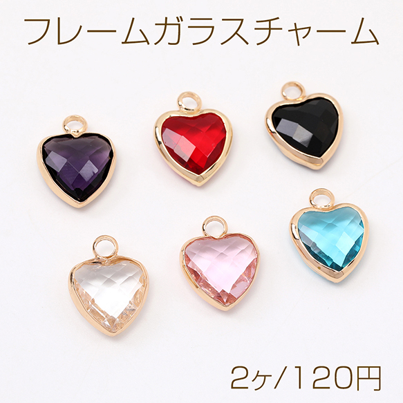 フレームガラスチャーム ハート型 1カン 10.5×11mm(2ヶ)