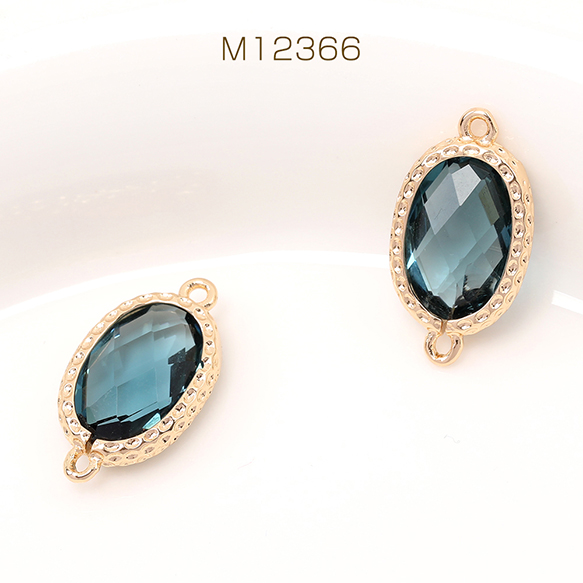 フレームガラスチャーム コネクターチャーム 接続パーツ 連結パーツ オーバル 2カン ロイヤルブルー 10×14mm(2ヶ)