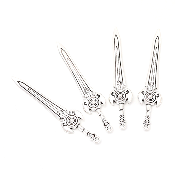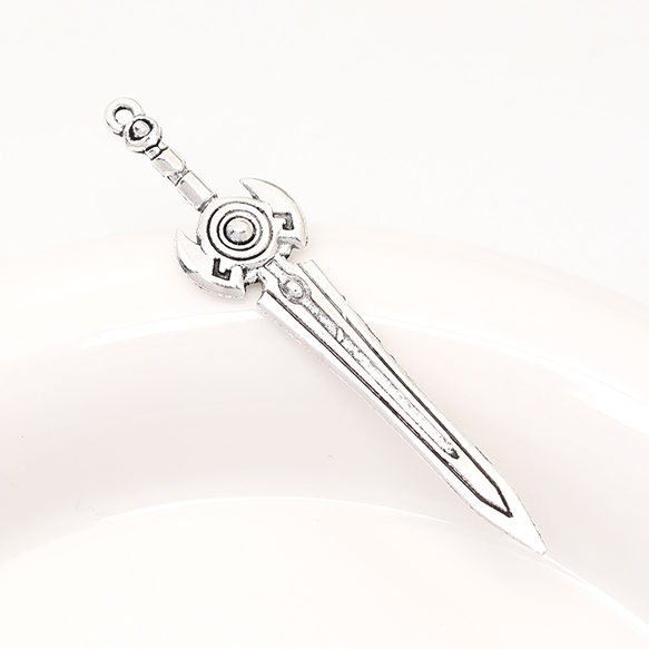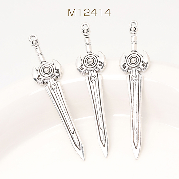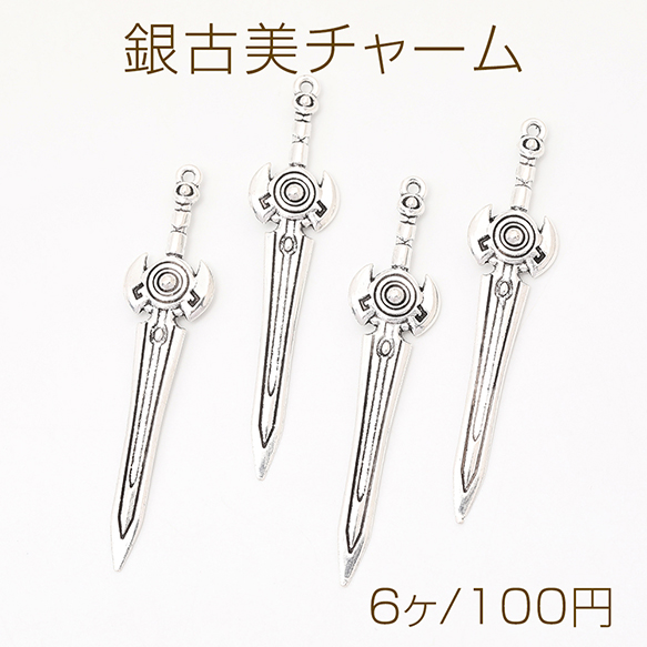 銀古美チャーム アンティークシルバーカラー メタルチャーム 銀古美  剣 カン付き 13×59mm(6ヶ)
