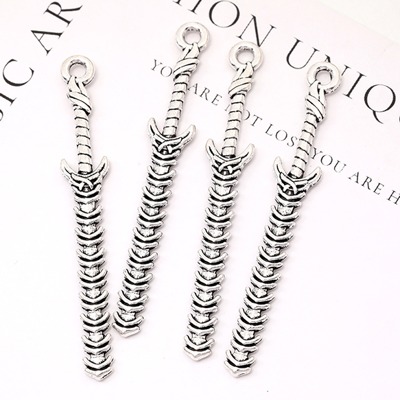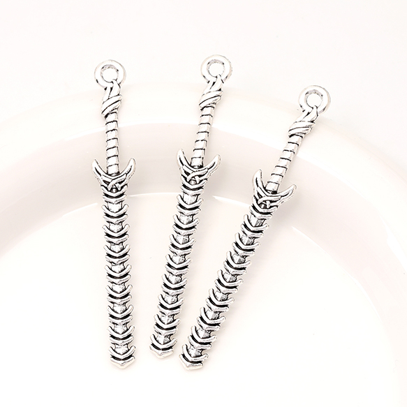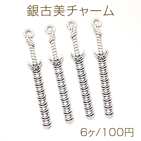 銀古美チャーム アンティークシルバーカラー メタルチャーム 銀古美 剣 カン付き 10×71mm(6ヶ)