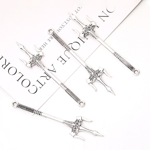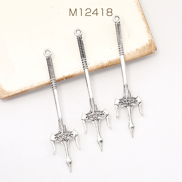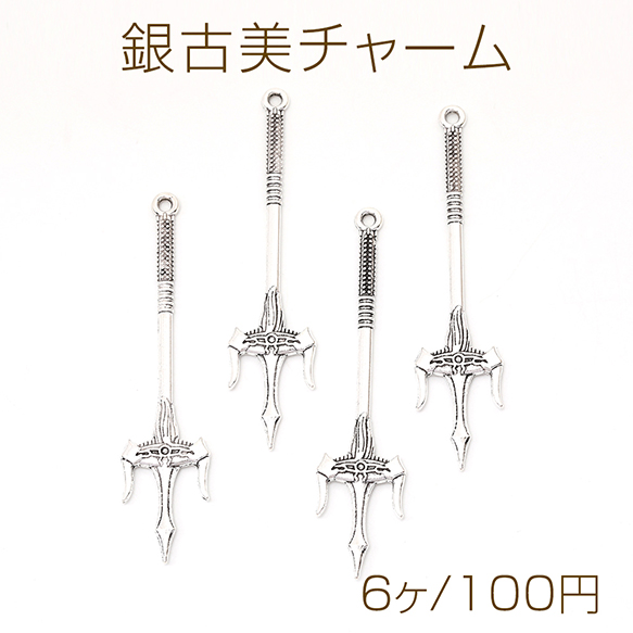 銀古美チャーム アンティークシルバーカラー メタルチャーム 銀古美 槍 カン付き 16×71mm(6ヶ)