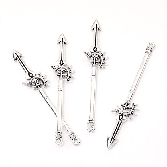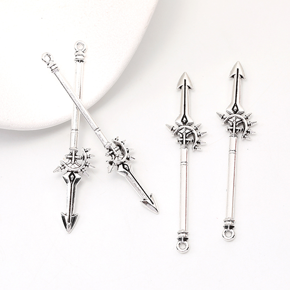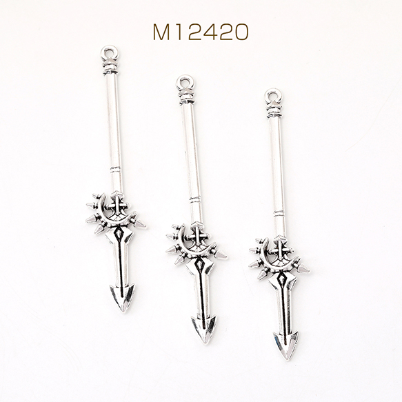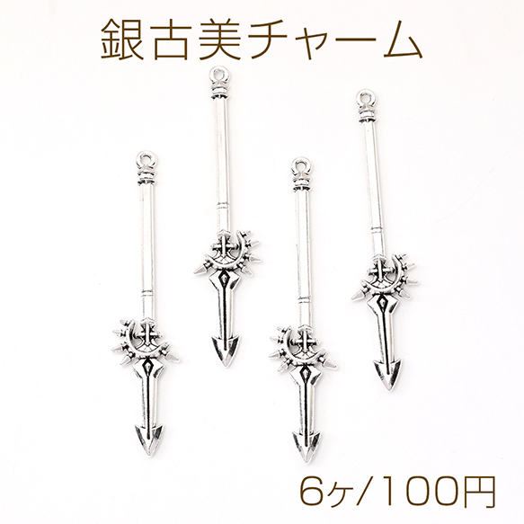 銀古美チャーム アンティークシルバーカラー メタルチャーム 銀古美 槍 カン付き 12×59mm(6ヶ)