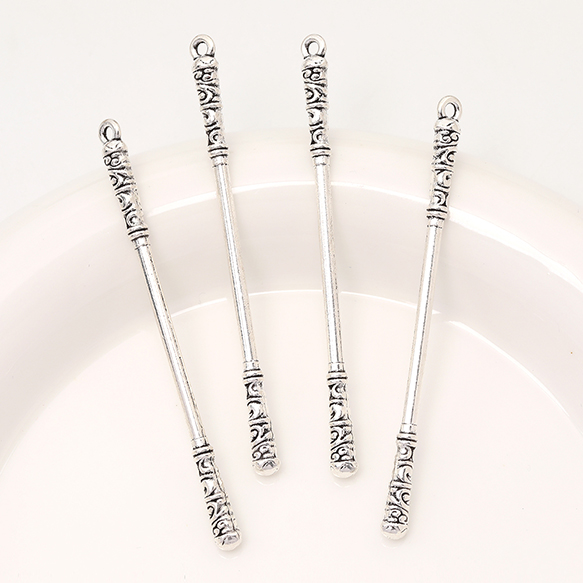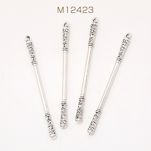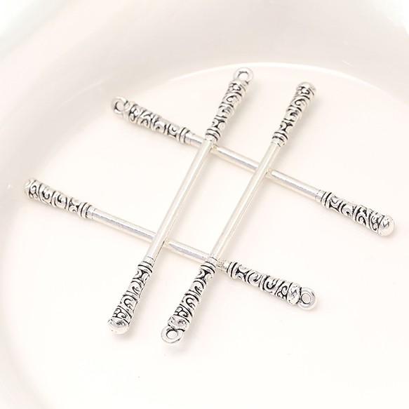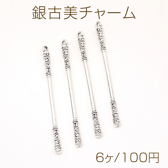銀古美チャーム アンティークシルバーカラー メタルチャーム 銀古美 如意棒 カン付き 4×69mm(6ヶ)