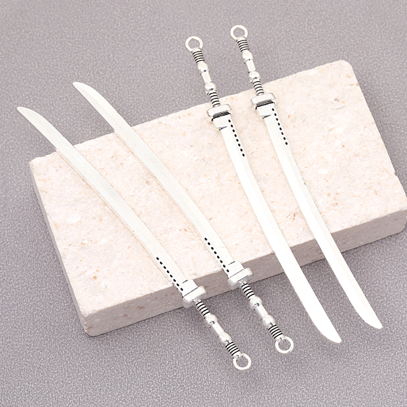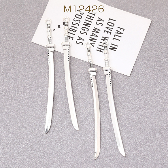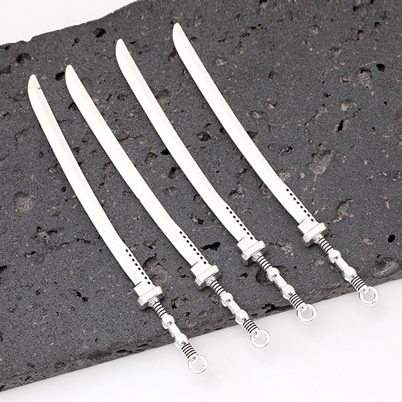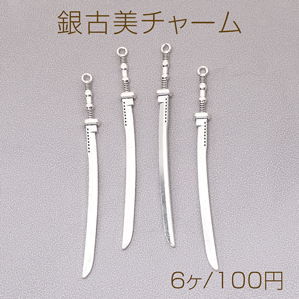銀古美チャーム アンティークシルバーカラー メタルチャーム 銀古美 刀 カン付き 8×104mm(6ヶ)