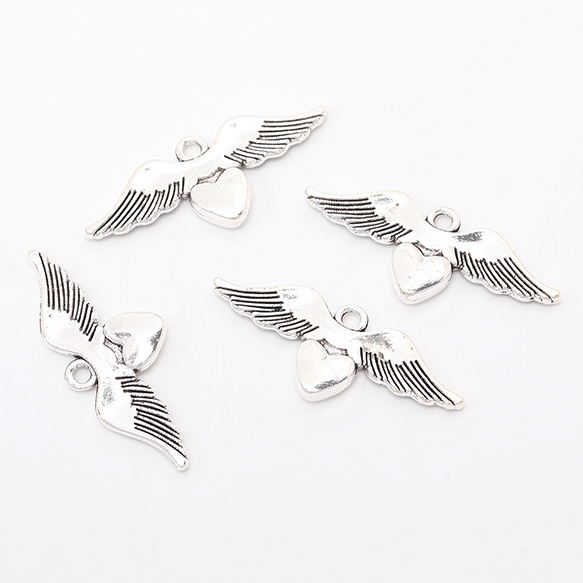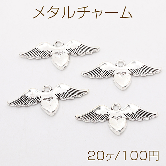 アンティークシルバー 天使の羽とハート 14×34mm(20ヶ)