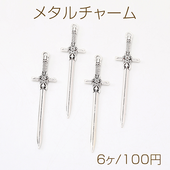 アンティークシルバー 剣 12×49mm(6ヶ)