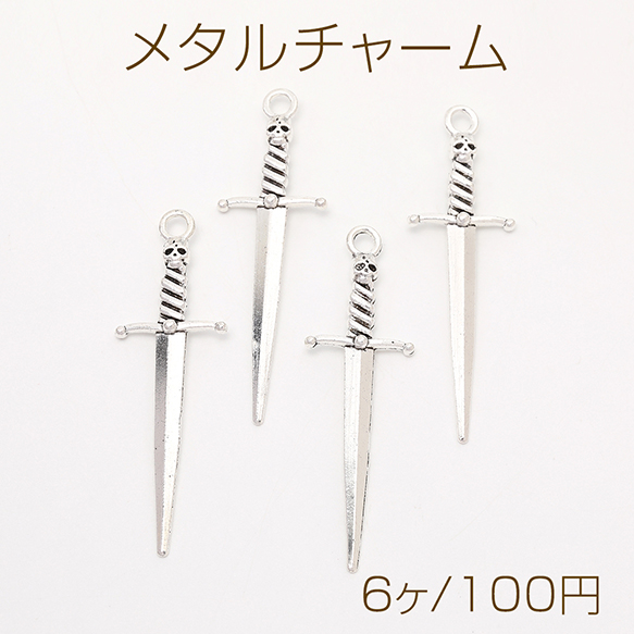 アンティークシルバー 剣 18×58mm(6ヶ)