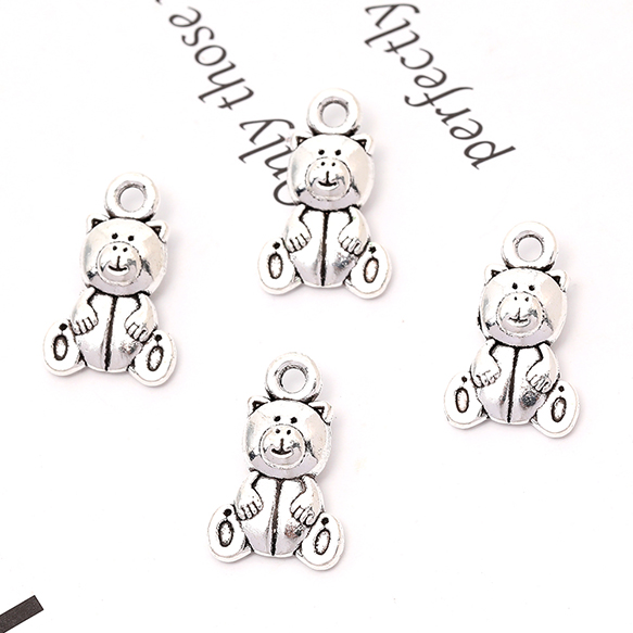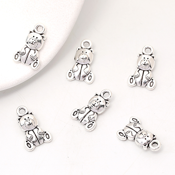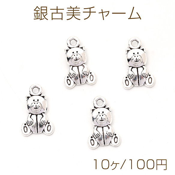 銀古美チャーム アンティークシルバー 立体メタルチャーム くま 10×16mm(10ヶ)