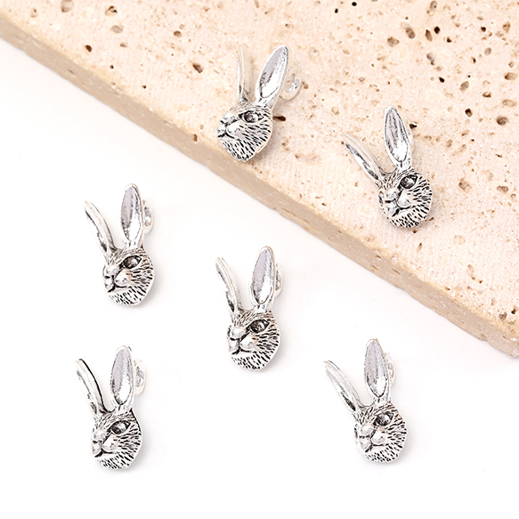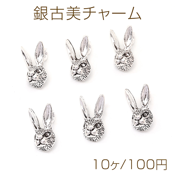 銀古美チャーム アンティークシルバー 立体メタルチャーム ウサギ 9×17mm(10ヶ)