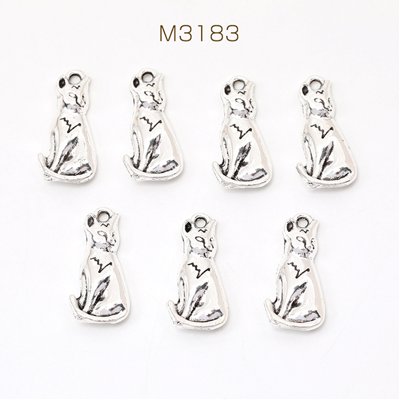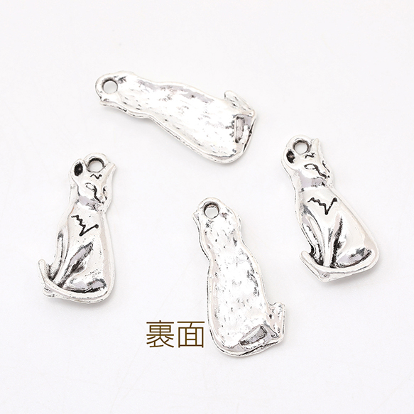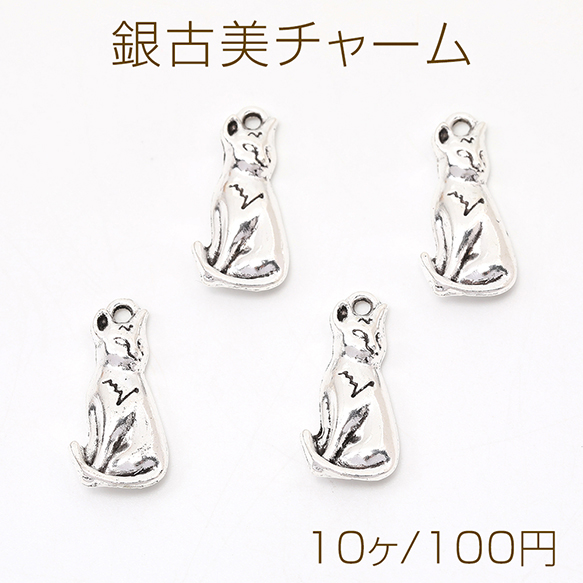 銀古美チャーム アンティークシルバー 立体メタルチャーム ネコ 10×22mm(10ヶ)