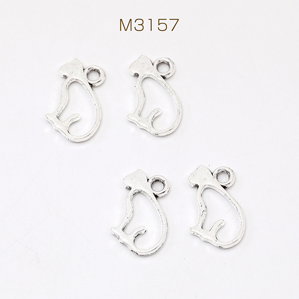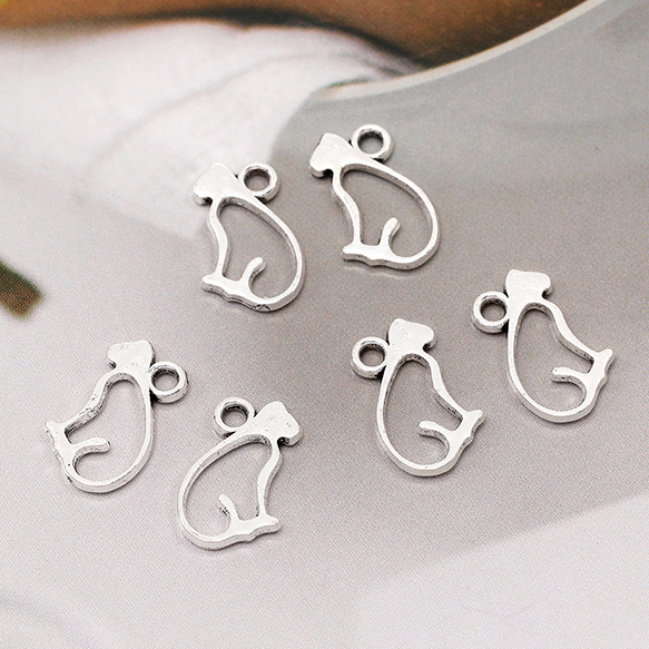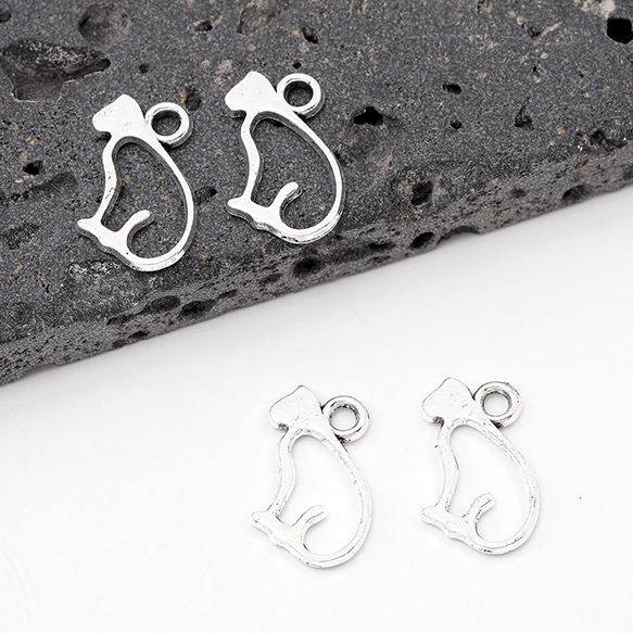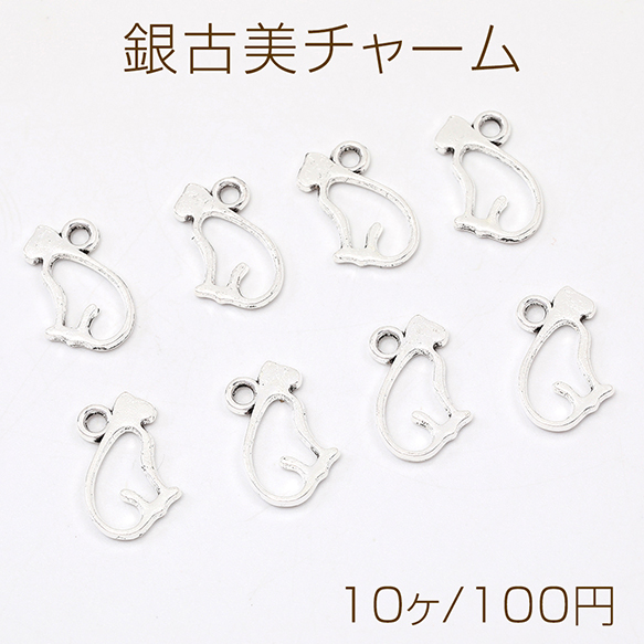 銀古美チャーム アンティークシルバー 立体メタルチャーム ネコ 10×17mm(10ヶ)