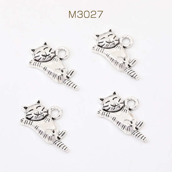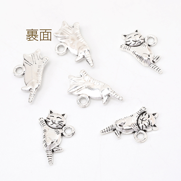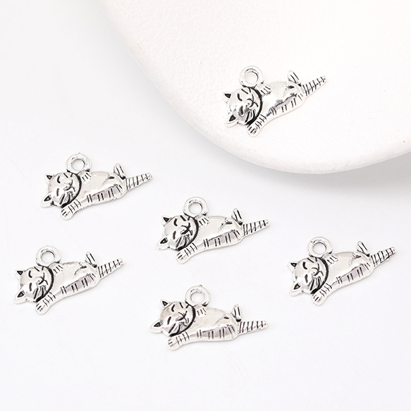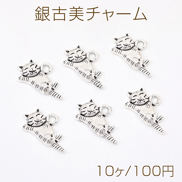 銀古美チャーム アンティークシルバー 立体メタルチャーム ネコ 11×19mm(10ヶ)