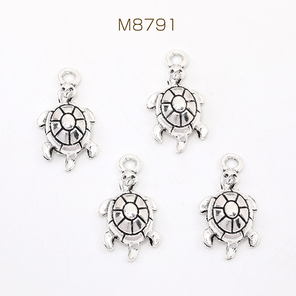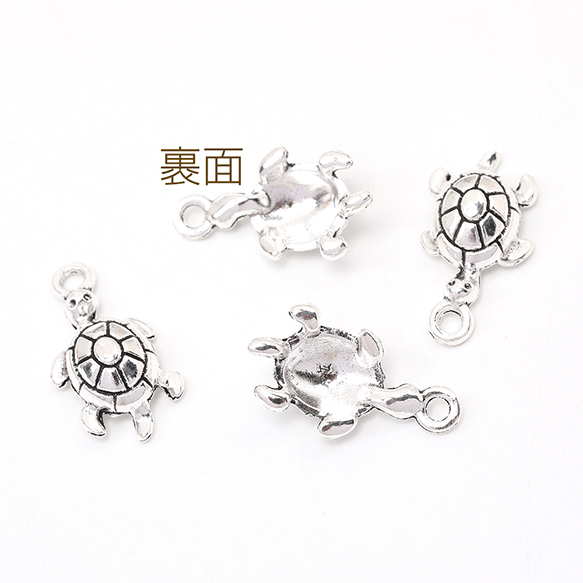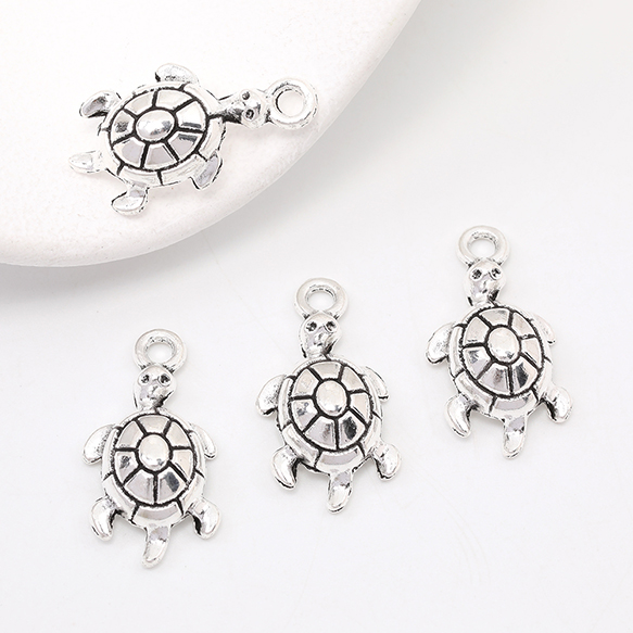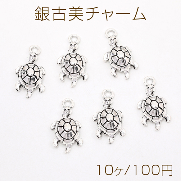 銀古美チャーム アンティークシルバー 立体メタルチャーム カメ 12×23mm(10ヶ)