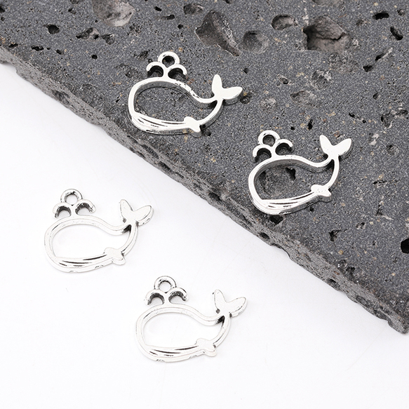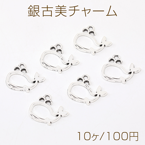 銀古美チャーム アンティークシルバー 立体メタルチャーム クジラ 15×19mm(10ヶ)