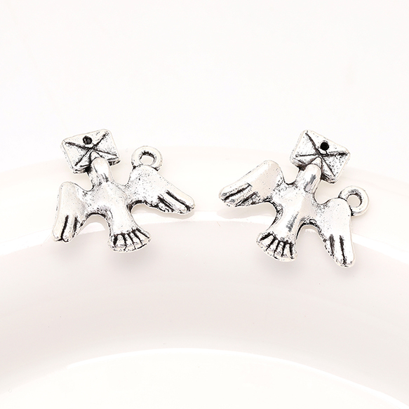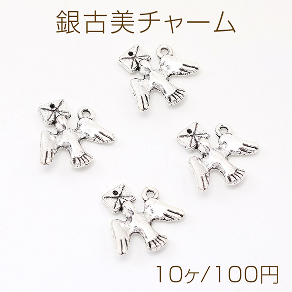 銀古美チャーム アンティークシルバー 立体メタルチャーム 鳥 18×18mm(10ヶ)