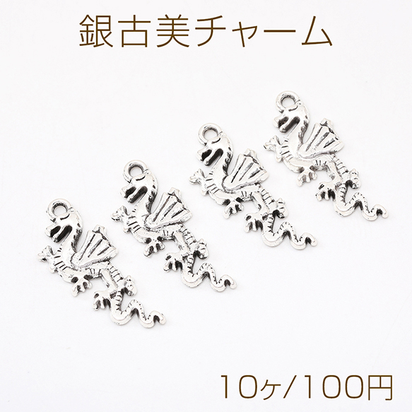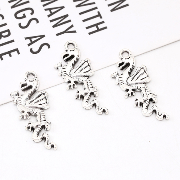 銀古美チャーム アンティークシルバー 立体メタルチャーム ドラゴン 11×27mm(10ヶ)