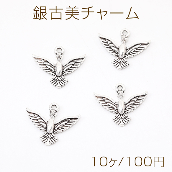 銀古美チャーム アンティークシルバー 立体メタルチャーム 鳥 16×20mm(10ヶ)