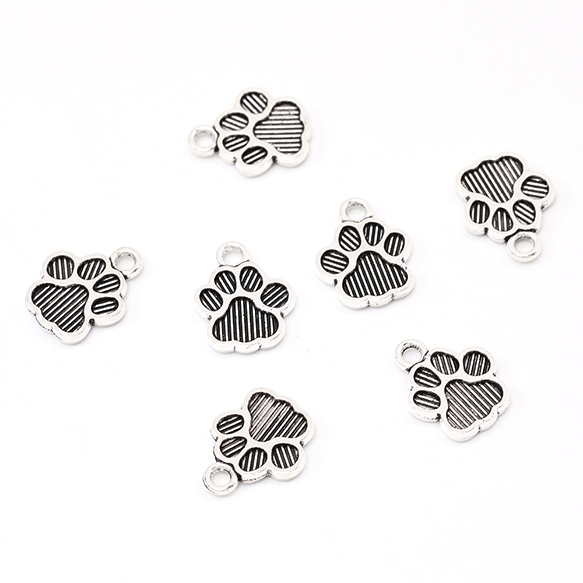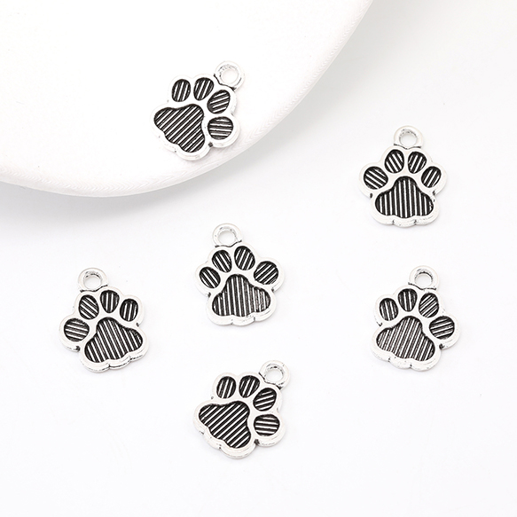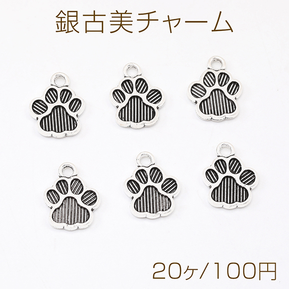 銀古美チャーム アンティークシルバー 立体メタルチャーム 猫の肉球(20ヶ)