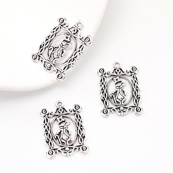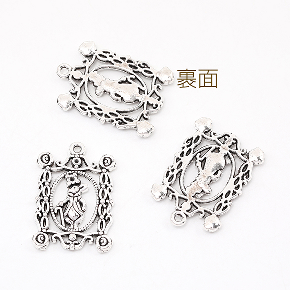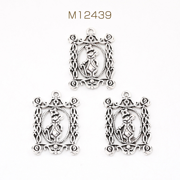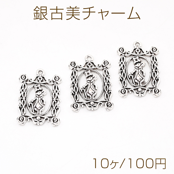 銀古美チャーム アンティークシルバー 立体メタルチャーム ウサギ&フォートフレーム(10ヶ)