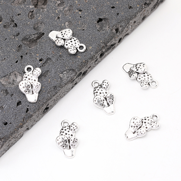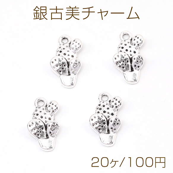 銀古美チャーム アンティークシルバー 立体メタルチャーム サボテン(20ヶ)