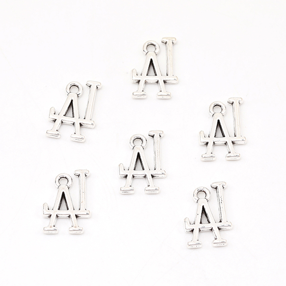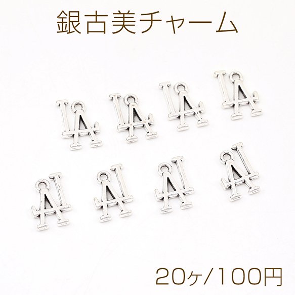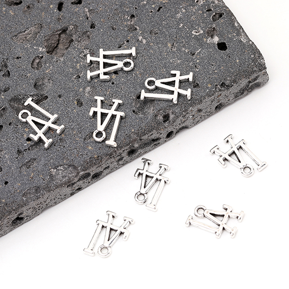 銀古美アルファベットチャーム アンティークシルバー 立体メタルチャーム 英文字 イニシャル L A (20ヶ)