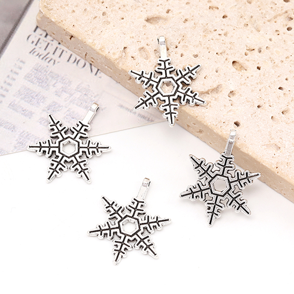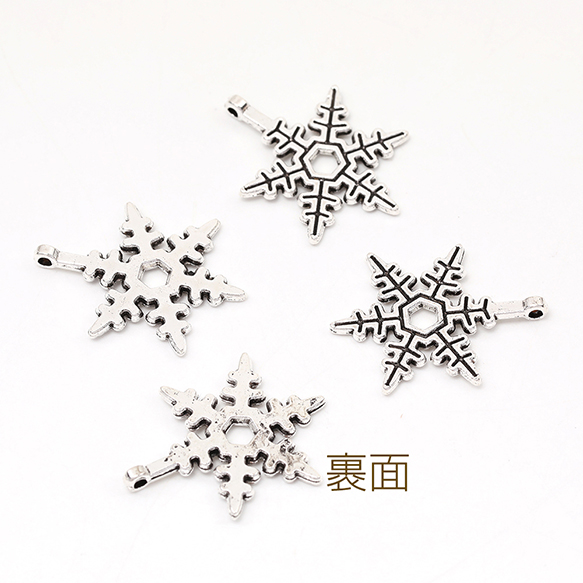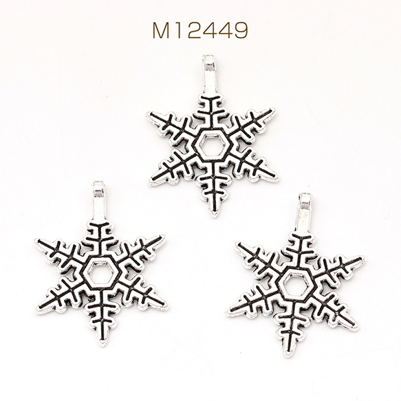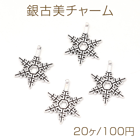 銀古美チャーム アンティークシルバー 立体メタルチャーム 雪結晶(20ヶ)