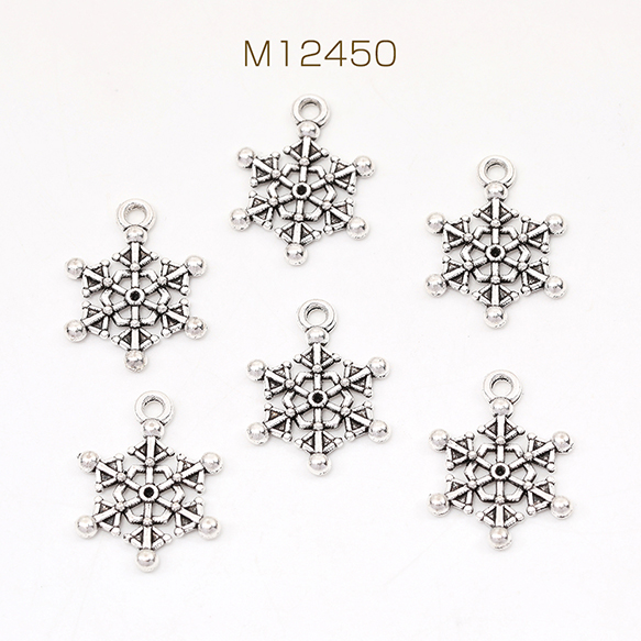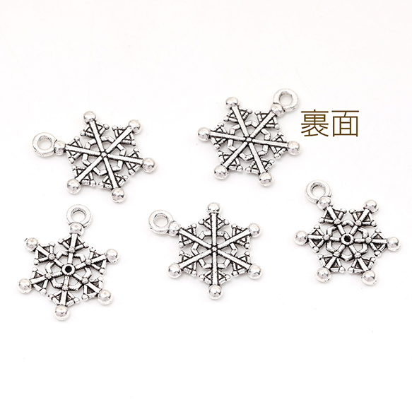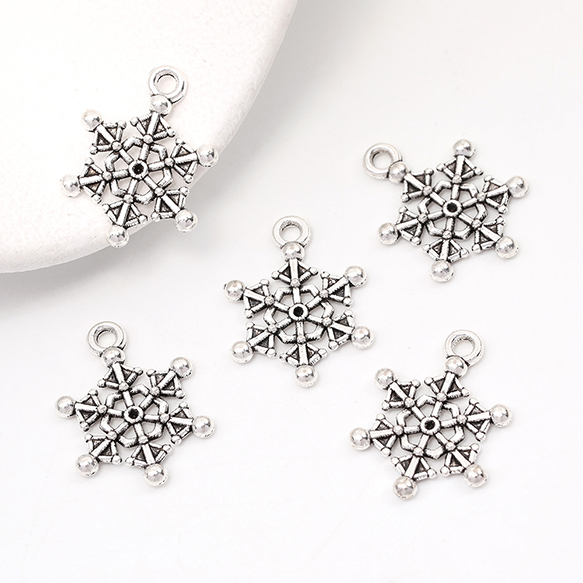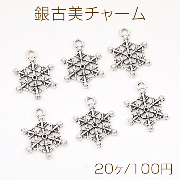 銀古美チャーム アンティークシルバー 立体メタルチャーム 雪結晶(20ヶ)