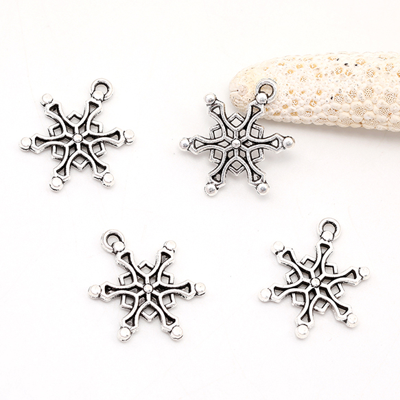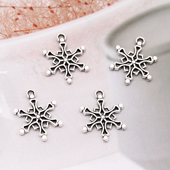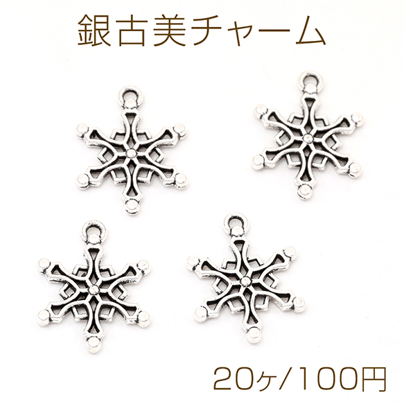 銀古美チャーム アンティークシルバー 立体メタルチャーム 雪結晶(20ヶ)