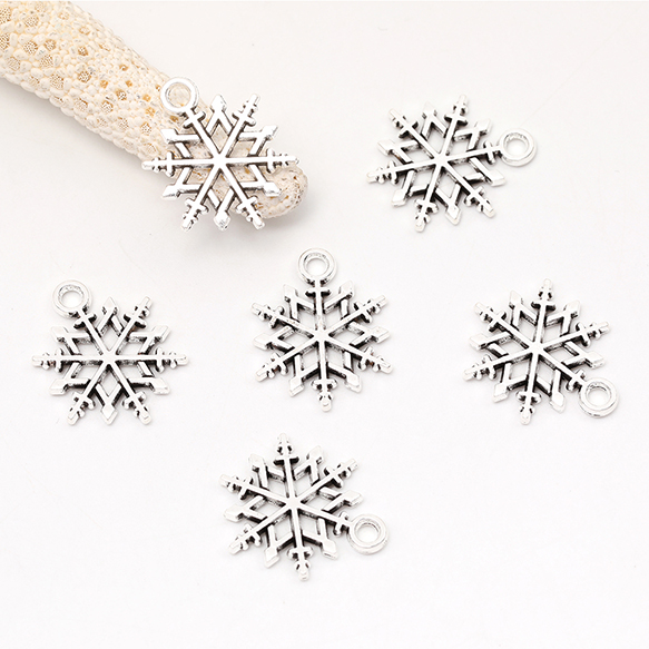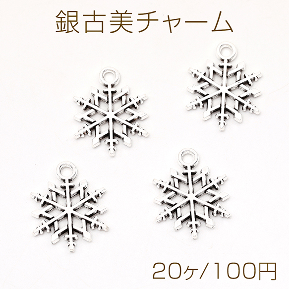 銀古美チャーム アンティークシルバー 立体メタルチャーム 雪結晶(20ヶ)