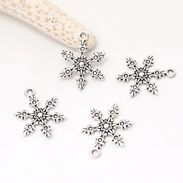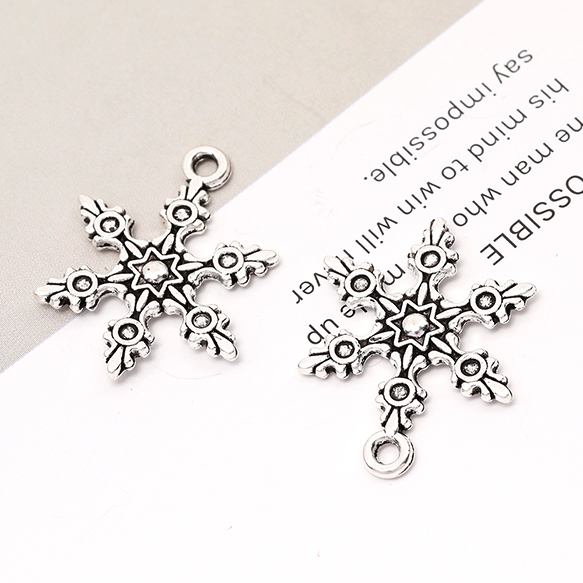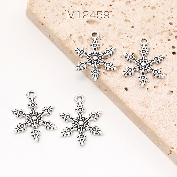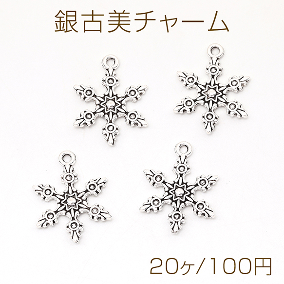 銀古美チャーム アンティークシルバー 立体メタルチャーム 雪結晶(20ヶ)