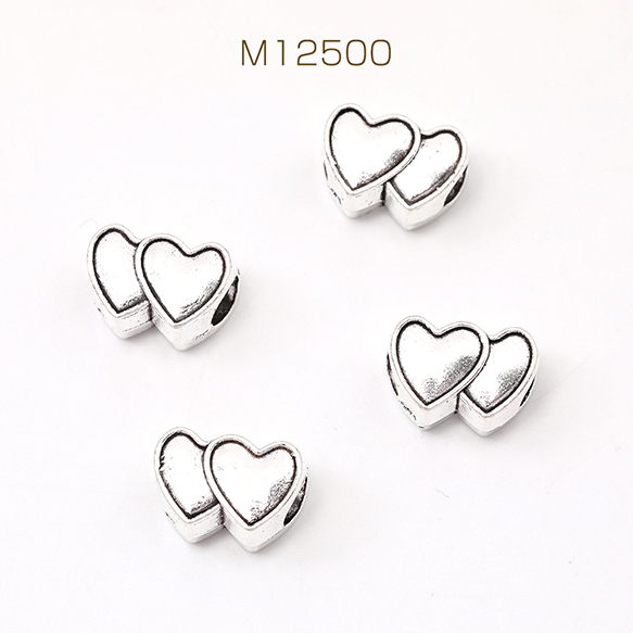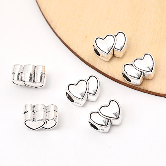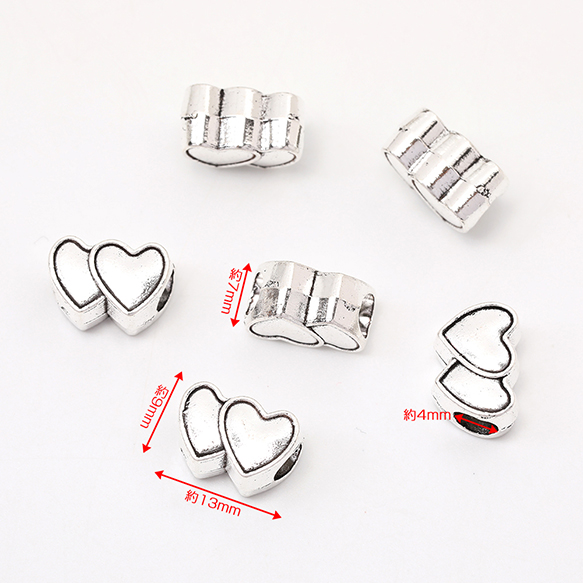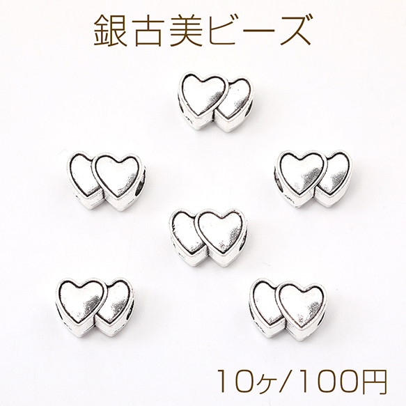 銀古美ビーズ アンティークシルバー メタルビーズ ダブルハート スペーサービーズ 通し穴あり(10ヶ)