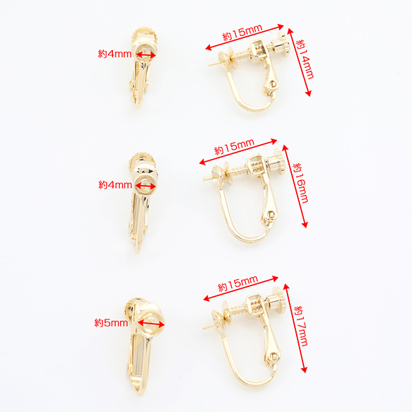 サイズ:【A】丸皿約4mm(約14×15mm)【B】丸皿約4mm(約15×16mm)【C】丸皿約5mm(約15×17mm)