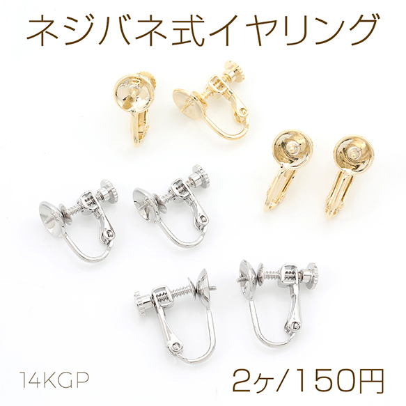 ネジバネ式イヤリング 基礎イヤリング金具 イヤリングパーツ 芯立て丸皿8mm(2ヶ)