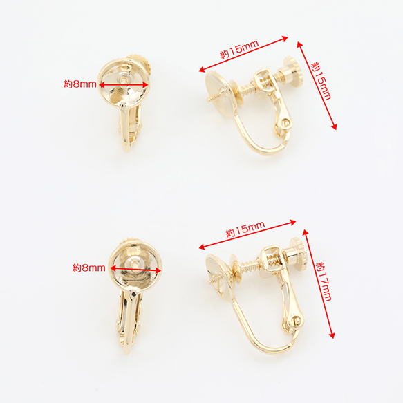 サイズ:【A】丸皿約8mm(約15×15mm)【B】丸皿約8mm(約15×17mm)
