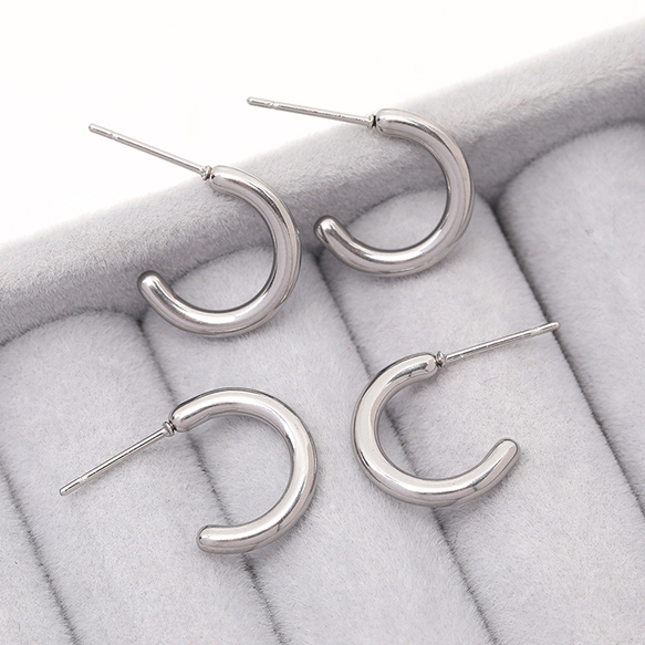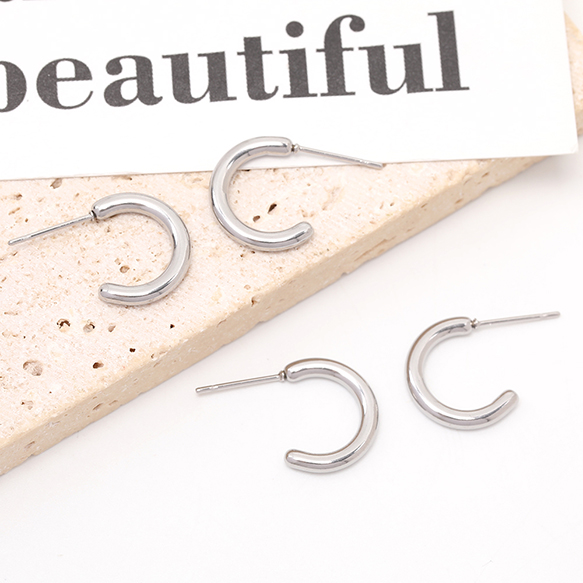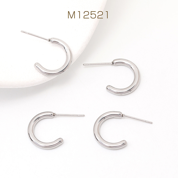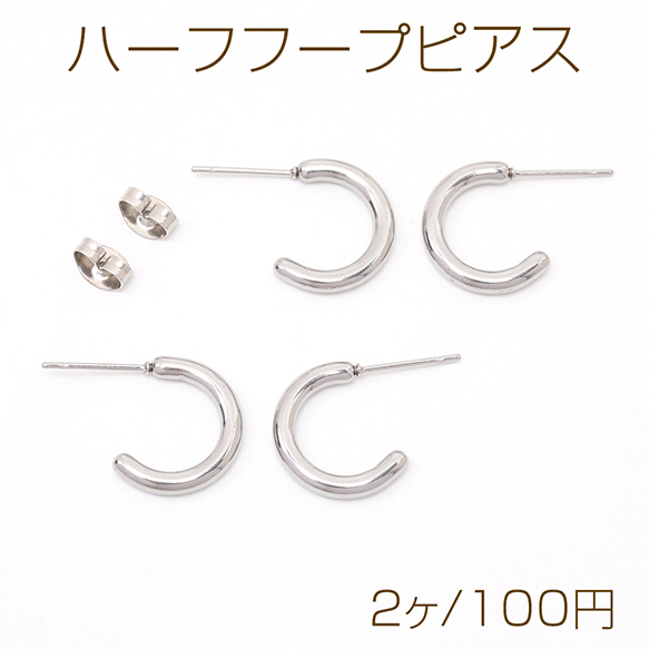 ハーフフープピアス ステンレス製 ピアス金具 シルバーカラー 2×15mm(2ヶ)