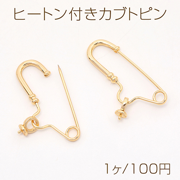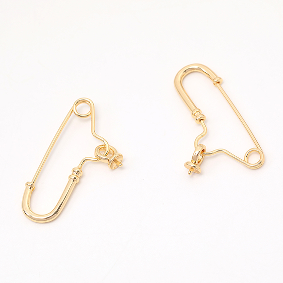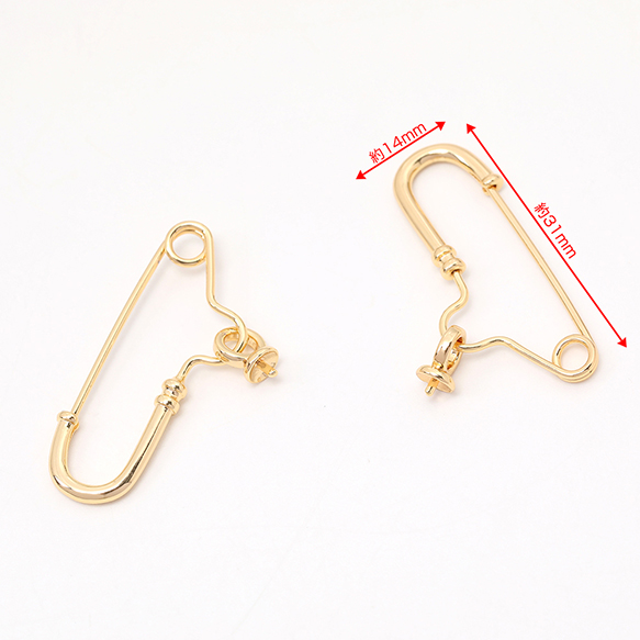 ヒートン付きカブトピン ブローチピン金具 18Kゴールドメッキ 色落ちしにくい 14×31mm(1ヶ)