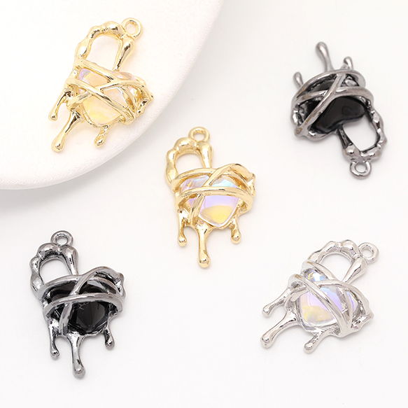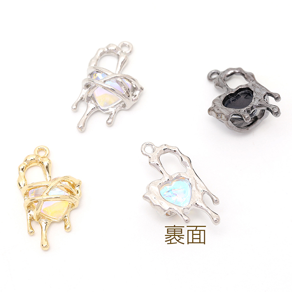 メルティハートチャーム メタルチャーム 樹脂貼り カン付き 17×27mm 15×26.5mm(2ヶ)